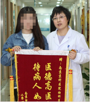 张女士在南京妇儿堂医院治疗外阴白斑康复后,特意为主治医生送来锦旗